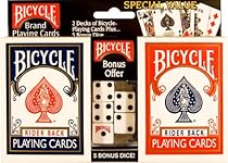 Bicycle 1001786 Review: United States Playing Cards 1001781 Double-Pack Poker Cards. "Bicycle Double Pack Poker Size Standard Index Rider Back Playing Cards with Bonus Dice" is the name of this item, but the cards in the pack are not Rider Backs. They are Bicycle Standard decks. Not to say that the Standard decks are bad, but I needed Rider Backs. In the Standard decks, all the suit pips are smaller, and on the face cards, the pictures are smaller as well. Also, there is a slightly bigger gap between the edge of the card and the Number/Letter and suit at the ... Read more »