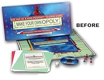 Buy discount Make Your Own Opoly Board Game. Construct a custom-made board game by using your PC and any simple color printer Make Your Own Opoly contains everything you need to hand customize the game board, cards and play money for your very own property-trading board game After you're done, even